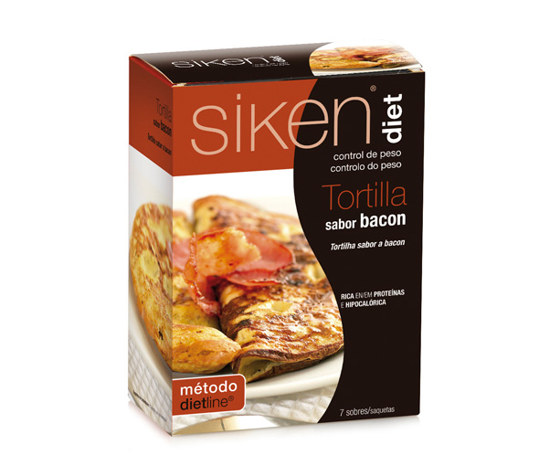 Siken® Diet tortilla sabor bacon es un alimento rico en proteínas y bajo en azúcares, especialmente formulado para preparar una deliciosa tortilla sabor bacon. Con un aporte de tan sólo 95 kcal por sobre.